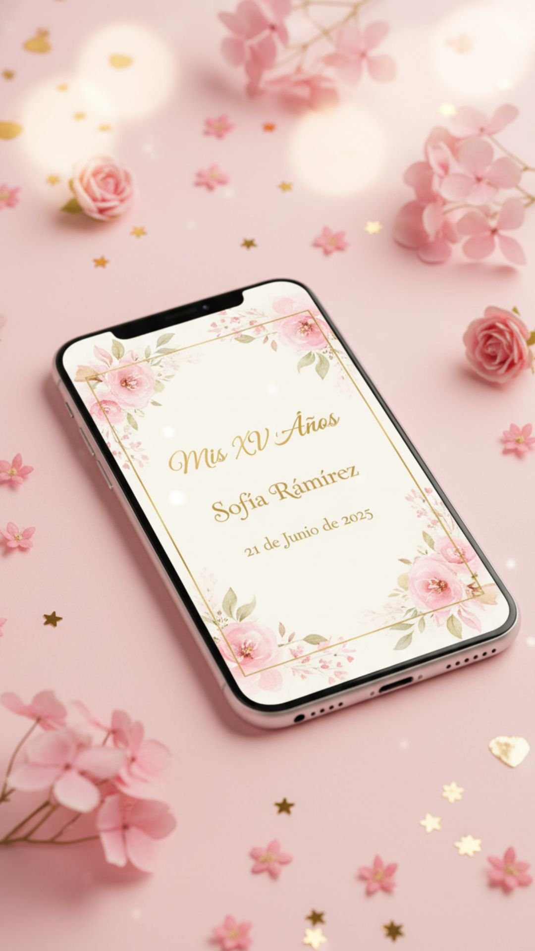 Nosotros diseñamos tu invitación digital de principio a fin. Tú solo disfrutas el resultado: elegante, personalizado y listo para compartir.